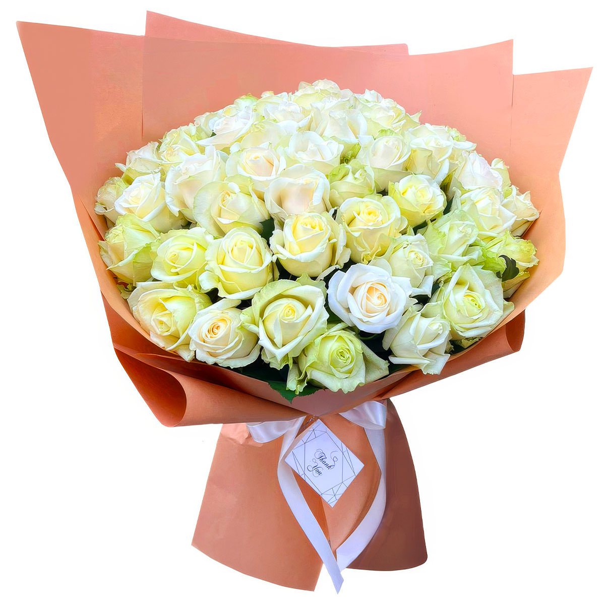 Роза одноголовая кремовая. Упаковка (лента, пленка, крафт, сетка, пленка матовая)
