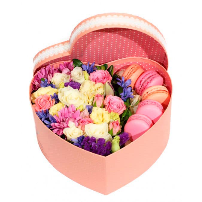 Цветы в коробке «С печеньем» с доставкой по г Тутаев: вы можете купить букет в гипермаркете цветов «Флормания» по цене от 2890 руб.