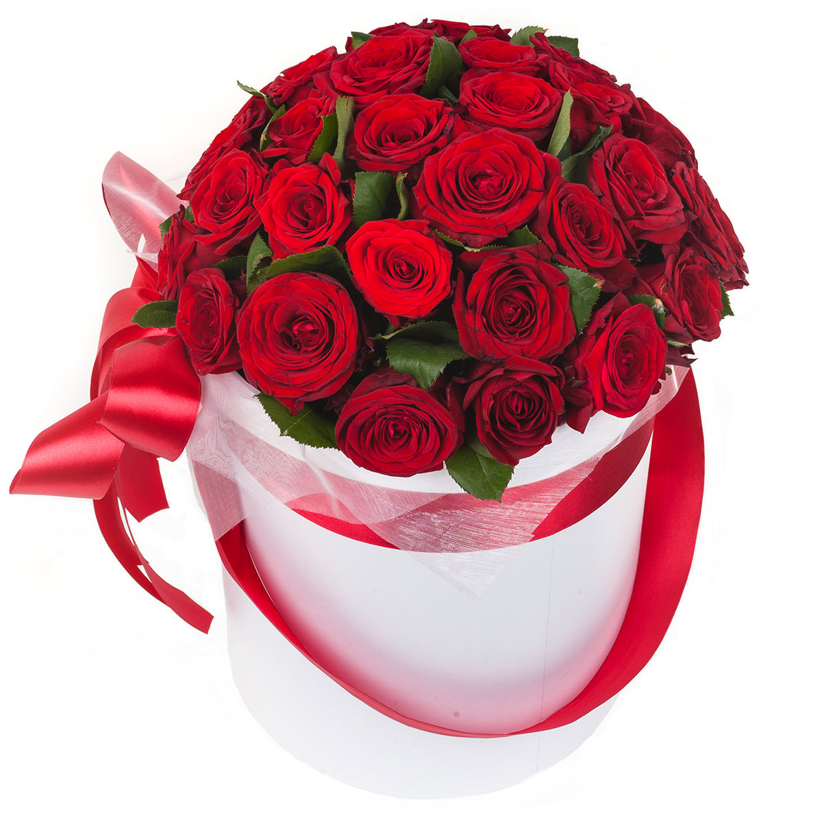 Цветы в коробке «Вечерняя заря» с доставкой по г Тутаев: вы можете купить букет в цветочном супермаркете «Флормания» по цене от 2890 руб.